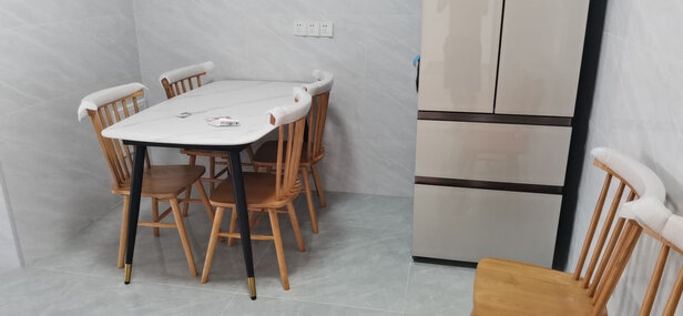 整体说下好了,对商品其实是满意的,和介绍及自己预期差别不大,至少现在刚装完之后的感觉是对得起这个价格的。岩板餐桌比市面上价格高出一档的商品差别不大,可以打90分。座椅略低于预期,没有想象中的贴合感和那么舒适,打80分的话还不不考虑包装和运输导致其中一个座椅放不平的问题。;;配送速度的问题:首先需要明确6、7月份服务商地区疫情管控严格(我家和服务商不再同一城市),服务商肯定是不容易的。从货到了服务商城市到安排安装时间等了足两周,服务商电话打不通,不知道被安排到什么时候,也没背告诉一下需要等的原因,通过催促客服才起到一定效果,有种被遗忘的感觉。。。最后觉得安装师傅还是很好的,安装完走到楼下还被我叫回来把座椅放不平的问题解决了
