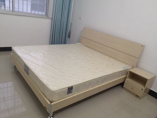 床颜色和房间地板相近,床垫很厚,还没试睡,感觉还行