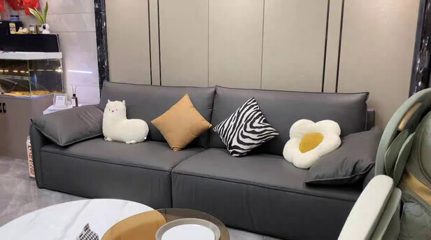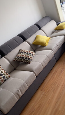 沙发非常不错,极简风的沙发,看上去非常的大气。物流速度也挺快的。安装师傅们非常的专业。沙发也挺结实的。