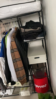 这个商品很实用,1.5米高,能挂衣服,还能放鞋子。快递的速度很快,回来之后自己照着说明组装,很快就装好了。