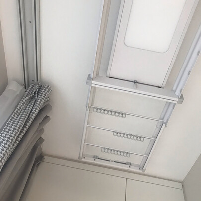 外形美观,时尚大气,承重能力强!结实牢固。一次性可以晾晒很多衣服。加厚铝合金材质,手感特别好。安装师傅细心。服务态度好。