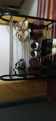 之前家里买的铁管简易鞋架,宝宝一踩就踩断了,放鞋子也不多,看到这款颜值不错,放鞋子也多,就买了,买回来一组装,放到门口刚好,不占位置,鞋子也都放下了。