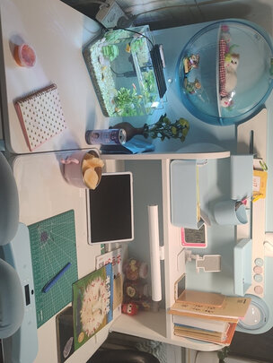 明年上一年级啦,选了这款桌椅,蓝色很舒适。我们选的星空款,亮起来很漂亮,护眼灯很柔和。桌椅升降方便,板材完全没有异味,可以给个大大的好评。