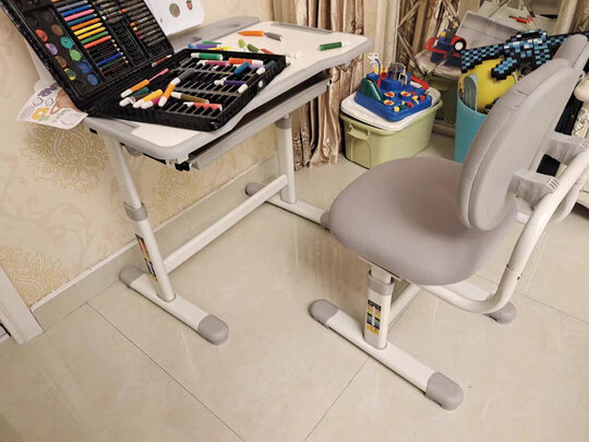 这套儿童书桌真心不错啊。上网研究了一阵子,挺多网友推荐这款,性价比很高,而且尺寸刚好,不会很占地方。桌子和椅子都可以调节高度,很方便。另外就是,基本没有异味,必须好评!一个人安装,还是要费点劲和时间。