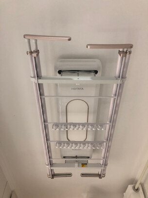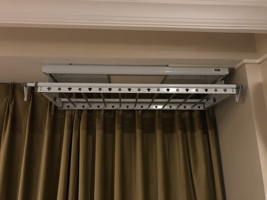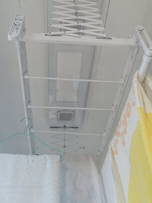 衣架使用很方便 ,带烘干的,梅雨季应该很实用吧。阳台上灯坏了一直没换,衣架带灯倒是省的换了。安装师傅和商家服务超好,很好的购物体验。