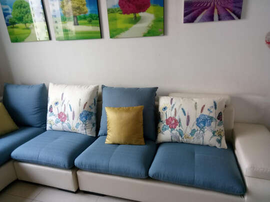 沙发很漂亮,双十一抢的比实体店便宜很多,客服110也很耐心,我不懂怎么拍都耐心回答。给个赞