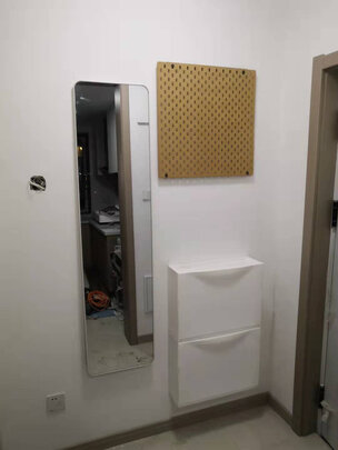 安装真方便,开始担心三毫米厚的镜子太薄,因为是装在门后的墙面上,镜薄一些,也会安装得更牢!