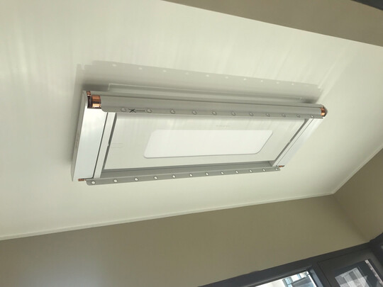 颜值确实不错,升到顶以后,就是一盏灯,没有多余的地方,机器还算薄吧,个人感觉这么大的灯确实用不着,一般的阳台都没多大,用不上。