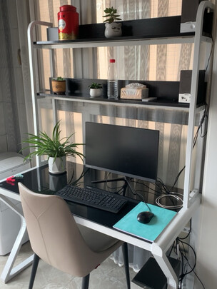 外观样式:白色看上去不错,比黑色好看;产品质量:质量还行,这个价算不错了;使用感受:放在办公室用的,感觉还不错,平时坐久了可以站起来办公;商家服务:这就不知道了;其他特色:性价比还可以,目前来说挺满意的