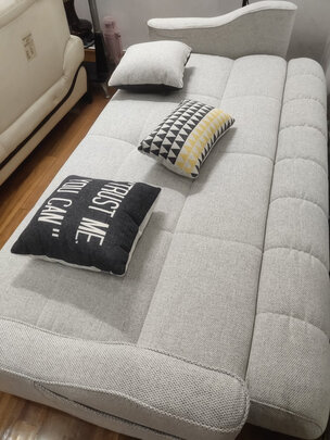简约大方,质量好,材质厚实,没有异味,自己安装,操作简单,结实舒服,很不错的一款沙发床。
