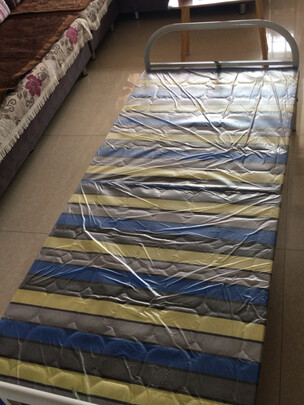 床很快的就收到了,质量不错,和介绍的一样很结实和耐用,钢管和床垫都比较结实,睡上去很稳,折叠收纳也很灵活,午休的好帮手,推荐购买!
