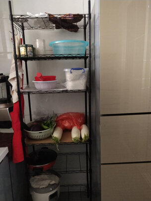 快过年了,厨房东西太多,刚好放个置物架,把这些东西归置在一起,灶台上就不会那么凌乱了,买的55公分的,刚刚好放下,和冰箱一样高。质量很好,自己组装也很简单。