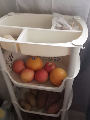 在网上找了好多蔬菜架,感觉这种式样的还不错,想着京东物流比较可靠,所以在京东上下了单,颜色是白一点的,安装很简单,装好还是比较结实的。