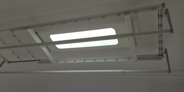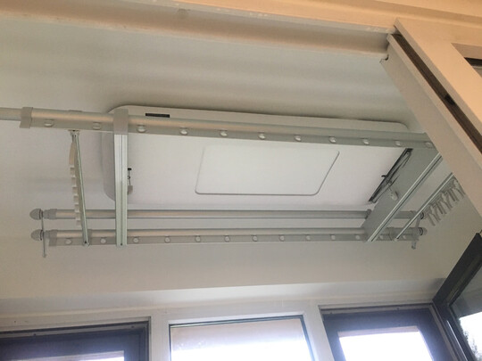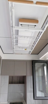 此款晾衣架颜色很好看。比较适合我这种阳台窄的,晾衣架平时不用就升上去不占地方。安装师傅很专业。