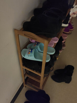 年前购买的鞋架,现在收到货了,跟店家描述的一样,五层的鞋架挺好。放上一家五口人的鞋子很轻松。唯一的就是发货速度慢了点。年前疫情有点紧张,我也体谅你们,其他的都还好。物流配送速度超给力。都给五星好评吧!想入手还没下单的朋友们可以入手去购买。真的很好;外观样式:简单大方;商品质量:很好;产品材质:竹木;承重能力:每层放上四双鞋子没问题;适合场景:适合门内过道摆放;配送服务:邮政快递