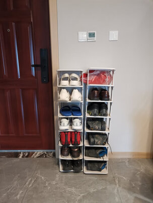 鞋架很实惠,安装很方便,扣进去就可以,特别简单。五层能放的鞋子还是挺多的,最上面一层还可以放日常用品,不错。鞋板偏薄,但一分价钱一分货,也可以接受。