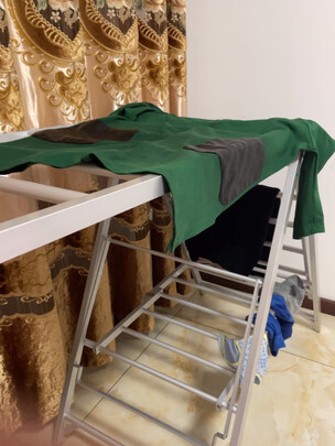 图片过于夸张,夏天的衣服晾起来没问题,但感觉冬天衣服挂多了可能不太行,不是很结实的样子。