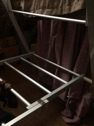 这个晾衣架外形简捷大方,非常实用。有一定的承重力!产品材质是那种不锈钢的,看着很结实!希望能用很久!