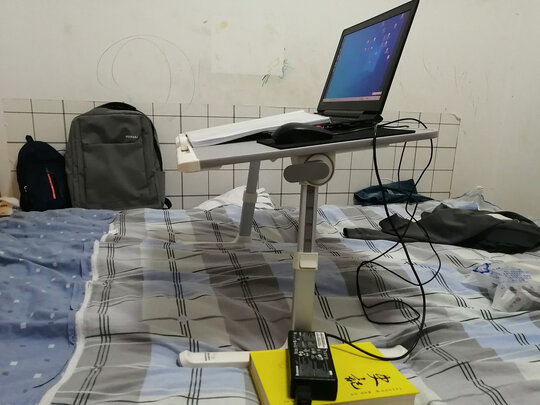 在床上放联想拯救者r9000p+支架还是很稳的,也很大,放下电脑还能防鼠标,104键盘也没问题,唯一的缺点就是这个放手机的地方太鸡肋了