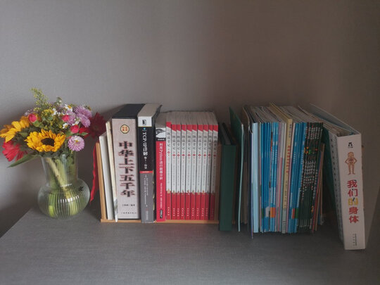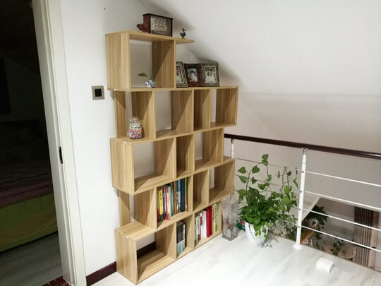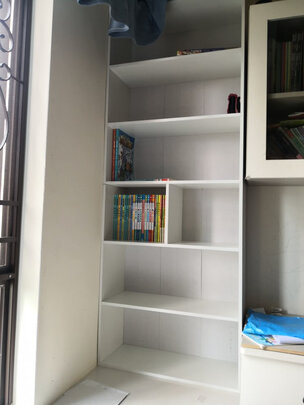 孩子上学之后,读的书越来越多,也买了一些书给孩子看,原来的那个小小书架就不够用了,在京东选了一段时间,就选了这款书架,安装比较简单,如果有视频安装指导就更好了,有一块板子尺寸有点问题,安装完成之后第一层有些不平整,不过还可以用,带着孩子一起把他的书整理一下,看着整洁很多。