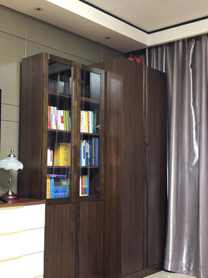 习惯好评,样式不错,千万注意负责安装的师傅很重要,要专业,否则不能让他们安装。书柜安装调试两次才完工。;门是实木,其他侧板、背板不是实木,板材的衔接处是塑料管和五金件连接,总体还行。