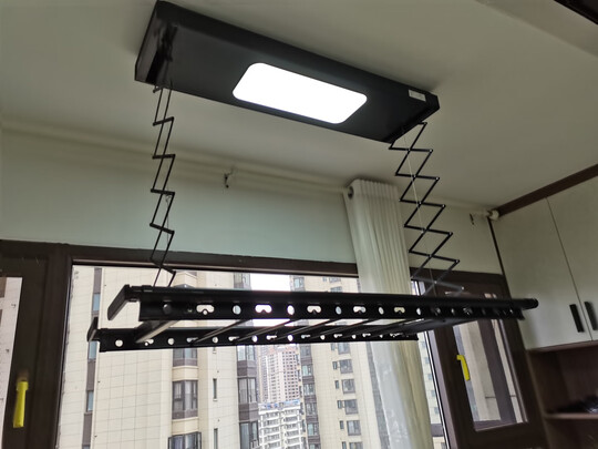 今天上午收到货中午师傅就上门按装了,这款晾衣架材质;很好结实,遥控器粘贴在墙面方便遥控,真的是物美价廉;这个尺寸刚刚好,;,特意換掉了家里老的,选这个主要还;是下降高度比其他家的要低些 晒衣服会轻松很多,会推;荐给我朋友们的!