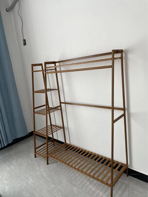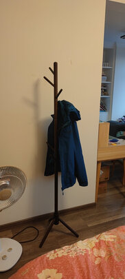 在网上看到这款挂衣架,看网友评论都很不错,所以放心购买。买回家后,组装非常方便,实木的,无异味,承载力也不错,大家可以买