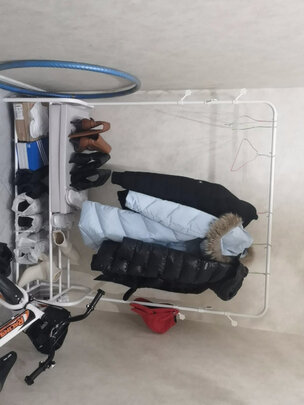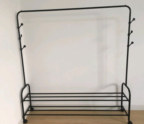 组装简单方便,女孩子也能轻松搞定。感觉还蛮结实的,装好用手摇了摇,挺稳的,不晃。买的最大号好像真蛮大的,要是挂钩也是钢管材质的就好了,塑料的老感觉不太给力。