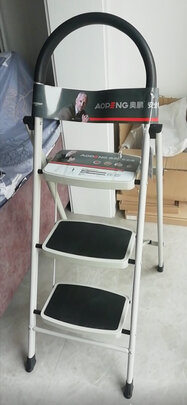 产品材质:材质很好,很坚实;外形外观:外形简约美观,踏板很大,非常稳固安全;体积大小:体积不大,方便收纳;承重能力:承重能力一个胖子上去没问题;京东快递一如既往的快又好 ,头天下单第二天就到货了,婆婆妈再三强调要脚踏板大的梯子,就选了这款,本来有四层和五层梯子,因为家里楼高也不算高,所以三层的足够用了,收纳也方便,叠起来就好