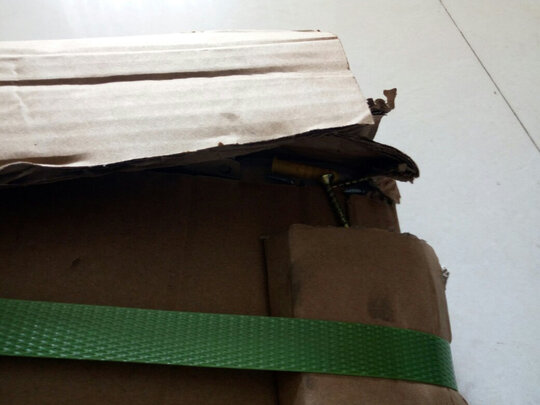 首先说包装的很到位,纸板垫在四个角上,很好的防止了磕碰。掌柜的还送了一整套的隔板安装用的三角铁和螺钉。再说木板吧,板材有点软,应该不是松木的。晾了半天,下午再安装,就发现有几块木板翘了,变形不平整。在用料上还有待提高。
