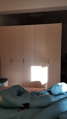 衣柜已经安装好用了几天了,材质和描述的一样,已经没有什么味道了,也比较厚实,安装师傅服务很好,值得购买