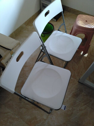 轻巧方便的塑料折叠椅,放在员工宿舍作为标配,结实又实惠。我试了下,做一个成年人,约160斤体重,稳稳的没有问题。塑料材质也没有异味和毛刺