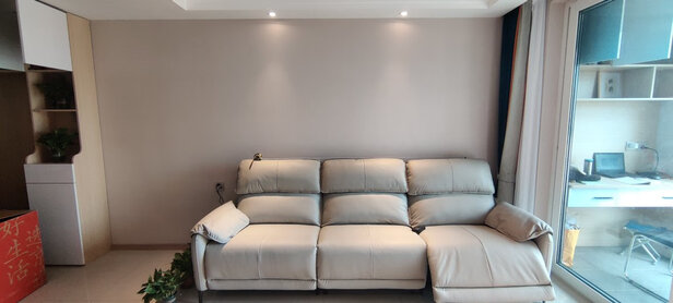 冲着京东自营买的,性价比比较高,实际尺寸2.65米,两个功能位挺好的,皮子摸起来偏硬,皮子气味比较大,扶手功能摁钮如果放在内测使用更方便些,坐深外露52cm,略小了点,55应该合适,作为外侧偏高里面低,身高不高的人坐到后面脚不着地,整体好评。
