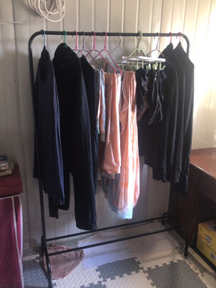 衣架大小适中,做工不错,就是纵向好像容易晃。可以挂5件左右的厚衣服,或者十件左右的轻薄衣服,脏衣篓不大,可以存3天的衣服。