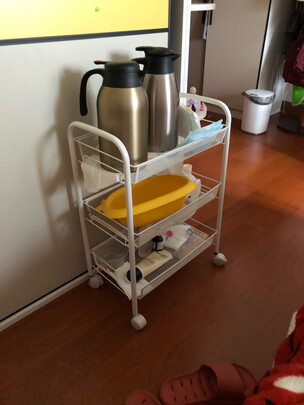 京东物流快是不用说的,这个置物架,到货安装很方便,有了这个置物车之后,宝宝所有洗澡和换尿不湿的东西都可以放在那里,再那里换尿不湿就推去哪里,方便的不行,大爱