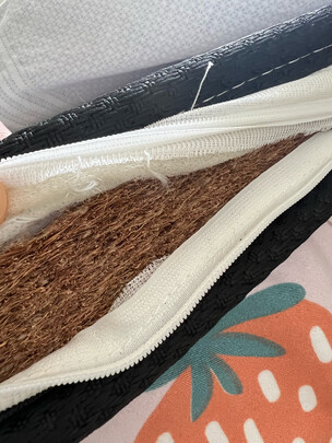 这款5cm的椰棕床垫刚刚好覆盖在原来的床垫上面,里面满满的椰棕,拆开没有任何味道,快递员也很热情送到门口~床垫稍稍偏硬,躺上去很舒服,终于可以睡个好觉了!