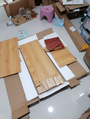 说实话,比起买的另外三组全柜子的,这组真的装的挺郁闷的,板子上都没标数字,只能一块一块板自己对着图看孔认板子,快递也是没送货上门,还得自己去驿站拿,超级重有没有,我一下拿了四组柜子的?