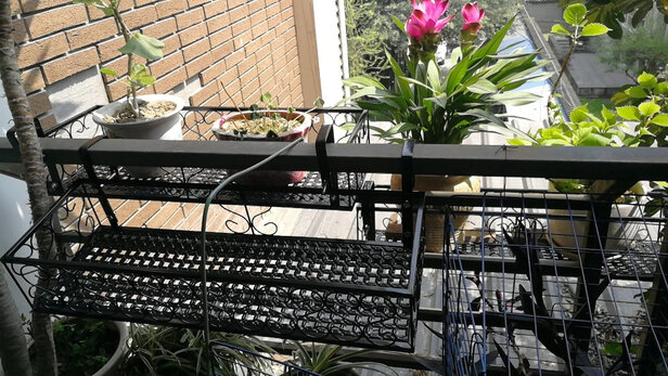 放到阳台把凌乱花盆重新整理。效果不错。放一些小一些、轻一点的花盆。但重量大的,没敢放,怕把花架压变形了