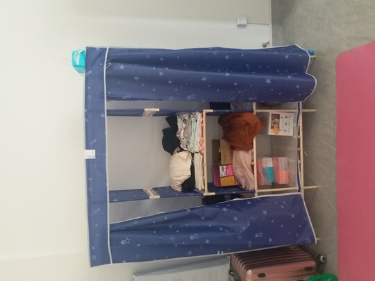 美家星简易衣柜布衣柜怎么样?优缺点点评【美家星简易衣柜布衣柜】质量怎么样?图文解说?京东快递是真快!买之前也没注意到货时间,结果第2天就收到快递了,很意外很惊喜!衣柜的外观很优雅简洁,安装好以后,承重力可以,很牢固,容量够大,可以装得下很多衣服!简单实用,经济实惠!推荐买买买! 外观样式:很洋气 承重能力:还不错?? 容量大小:容量很大,比想象中大很多,很实用! 适用人群:特别适合我们这种的打工的,容量大,不占地,哪有需要,就摆在那! 安装体验:很简单,很容易组装