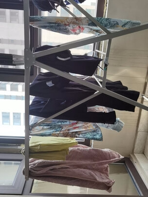 晾衣架折叠方便,可以放很多件衣服,晒床单被套都可以。很牢固,很稳固,结实。好用