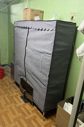 衣柜很结实,安装容易,没有少配件,物流给力,隔日就到。
