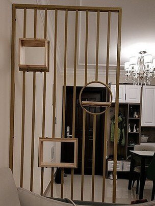 - 商品名称:桢知 北欧屏风隔断置物架花架入户隔断玄关装饰餐客厅创意镂空隔断金色 测量费 组装