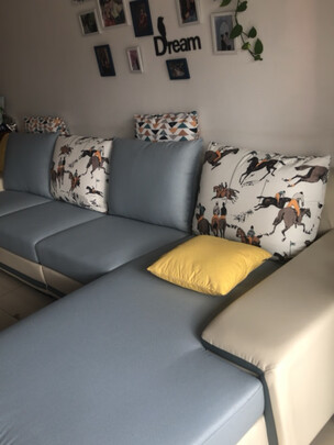 双十二下单的,虽然等的时间久了点,但是收到沙发很惊喜哈。沙发很漂亮,一点味道也没有哦,还送了好几个抱枕,颜色搭配很好看,不错的一次购物体验。