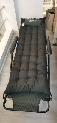 商品到手速度真的很快第二天就到公司了。;便携性能:折叠很方便,质地很轻,容易携带;舒适程度:扶手靠背,放脚休息很舒服,棉垫柔软质地结实;占地大小:收起来靠墙放置几乎不占地,平躺两个工位的位置;产品质量:整体质地精良,用料考究;其他特色:凳子,小床两用,极其方便