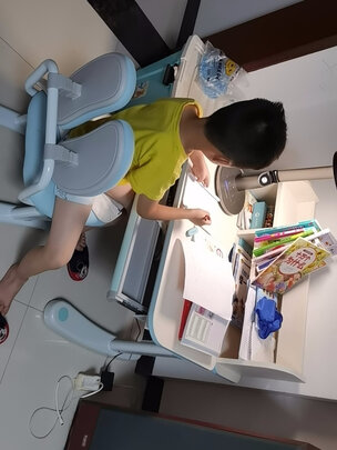 产品特别好,对比了很久,还是觉得这款最合适。发货速度快!自己安装也很简单!从书桌板材的封边,整张桌子的金属框架喷漆上看都是优等的!桌子可升降,而且带后轮方便移动!椅子带重量落锁功能!把手可以后折方便推入!座垫和靠背软硬适中!孩子喜欢很满意!