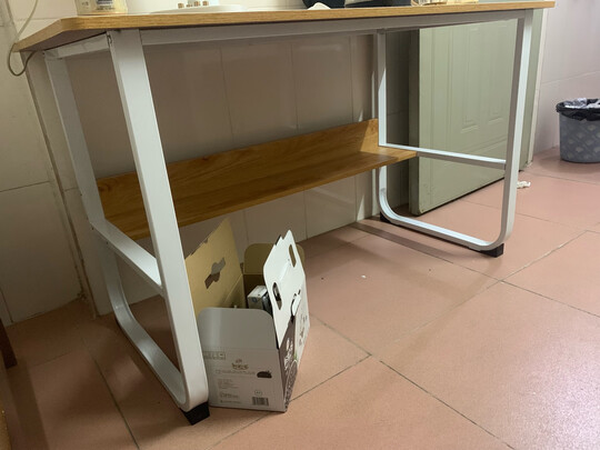 外观样式:外观靓丽,木色的好看,棱角分明小心磕到,安装简单,适合办公使用,居家必备;产品质量:没的说,安装简单,留有备用螺丝,很结实,不摇晃;使用感受:暂时感觉不错,上下两层可以放东西,节省了不少空间。;本来想着在其他平台买的,有便宜一半价格,但看评论,很多摇摇晃晃的,这种桌椅买来就是受气的。看京东上评论不错,就买了,真的结实哈。