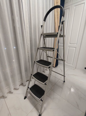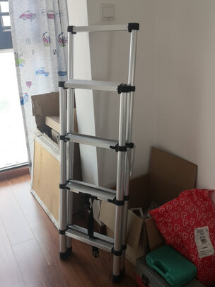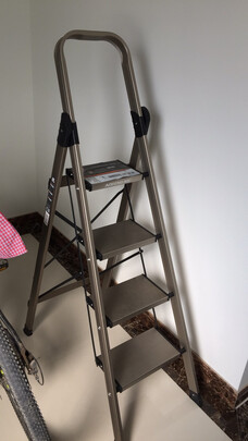 宝贝收到了,物流很快,第二天就到了。自己家里用,选择的四步梯足够用了。梯子是铝合金材质的,非常漂亮,高大上的感觉,站在踏板是也很稳当。非常满意。