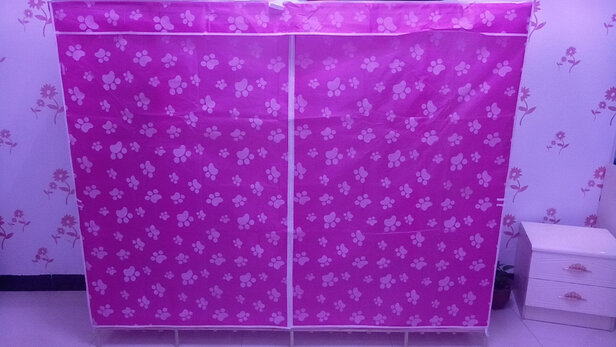 非常漂亮,不比纯木制衣柜差,甚至要好过木质的衣柜,容易搬走,方便省空间,结实,满分,好货!!