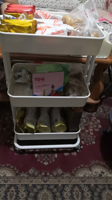 家里东西太多,尤其是客厅桌子上堆满了各种吃的,一方面显得乱七八糟,另一方面不方便找东西,前几天宅在家没大事就在京东商城转了很久、看了又看,最后选了这款小车,很不错,结构简单,容易安装,东西终于可以分类了,找起来方便对了!
