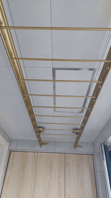 外形外观:滑轮小巧,顶盖遮挡后完全看不到了,金色还是比较耐看,也不会很显眼,表面光滑,摇柄做工一般。;承重能力:师傅给固定的很好,钢丝接扣固定牢固,承重应该没问题,这个后面再试。;产品材质:两根杆子独立调节,但摇把材质一般,塑料的,尤其是担心插口那里,以后使用再续评。;安装服务:安装师傅非常负责,按时到位,反复沟通细节,确保安装效果,给5星好评。;商家客服服务态度好,有问题及时解决,服务满意。
